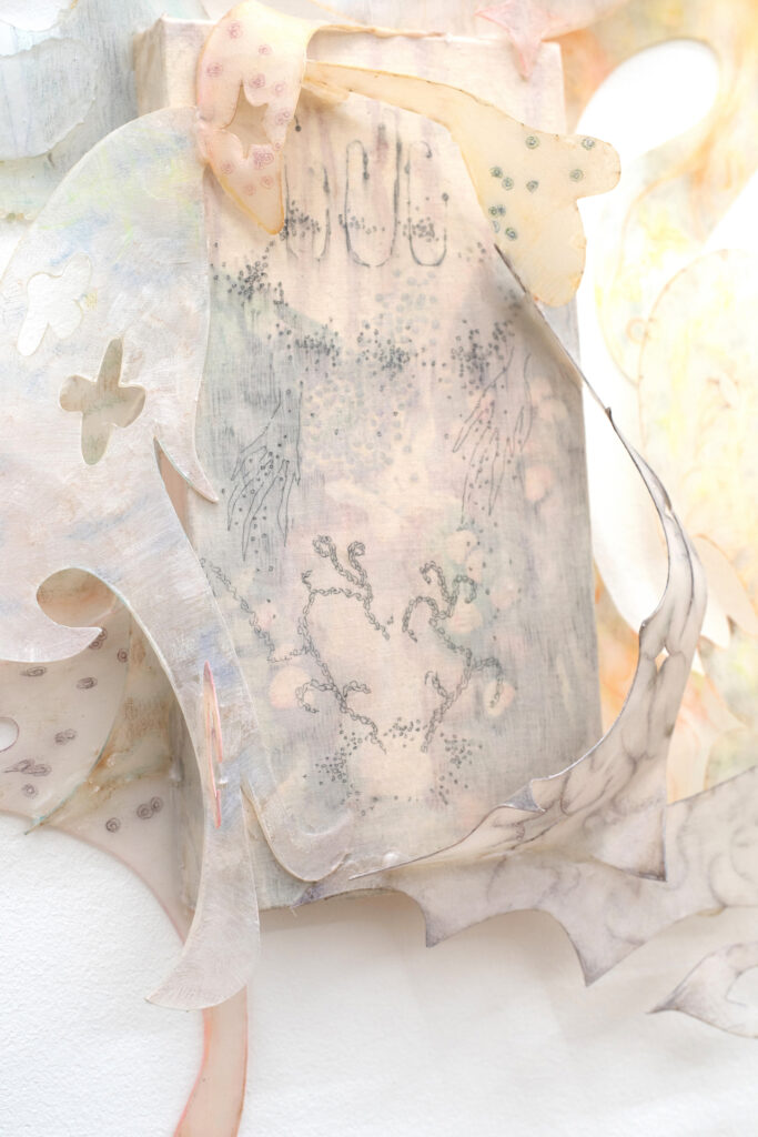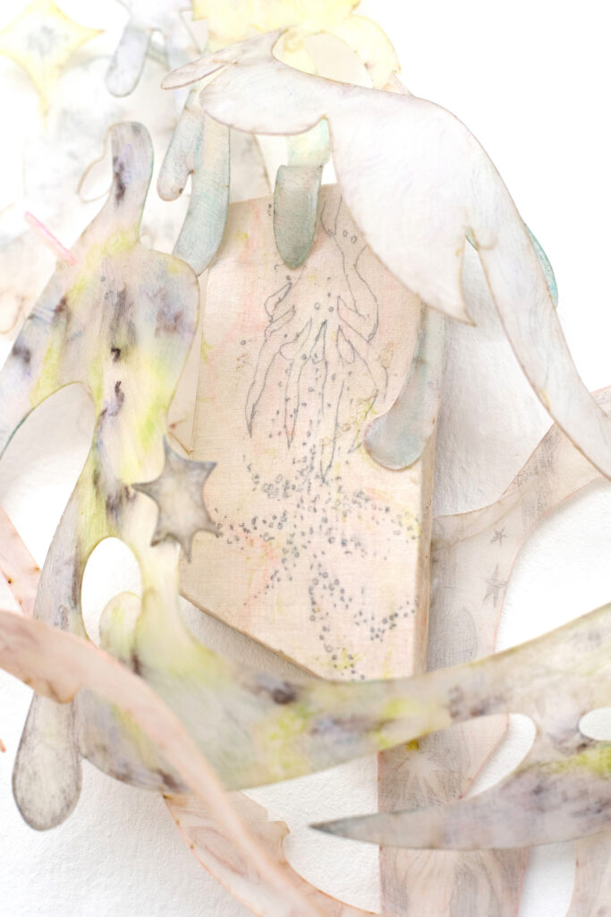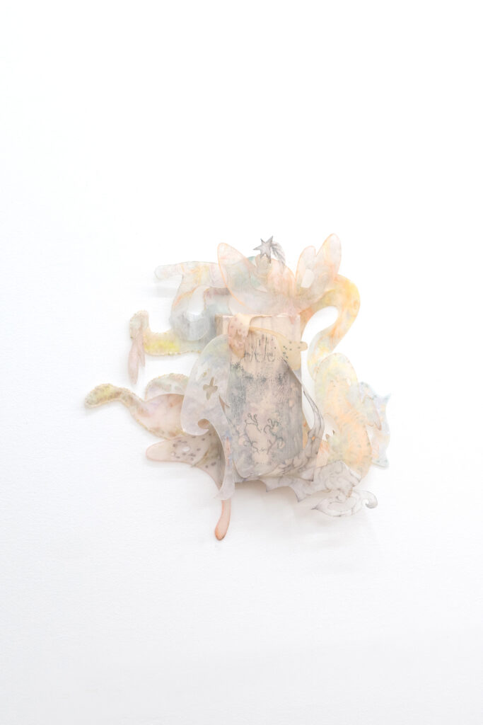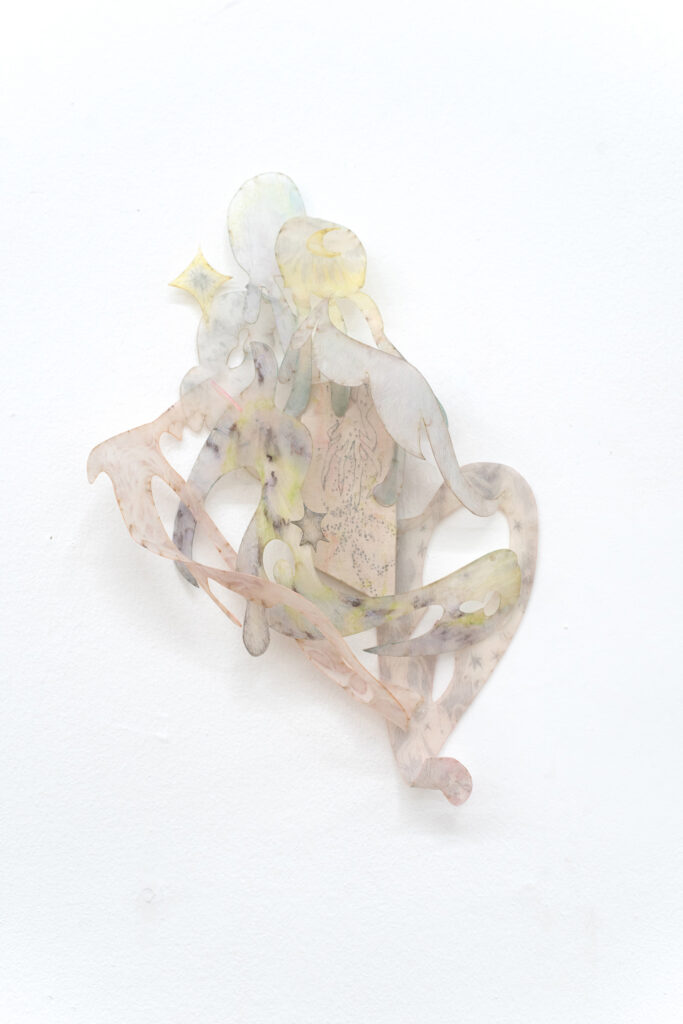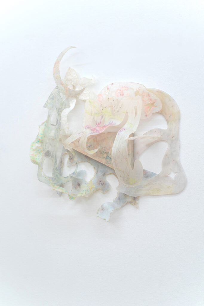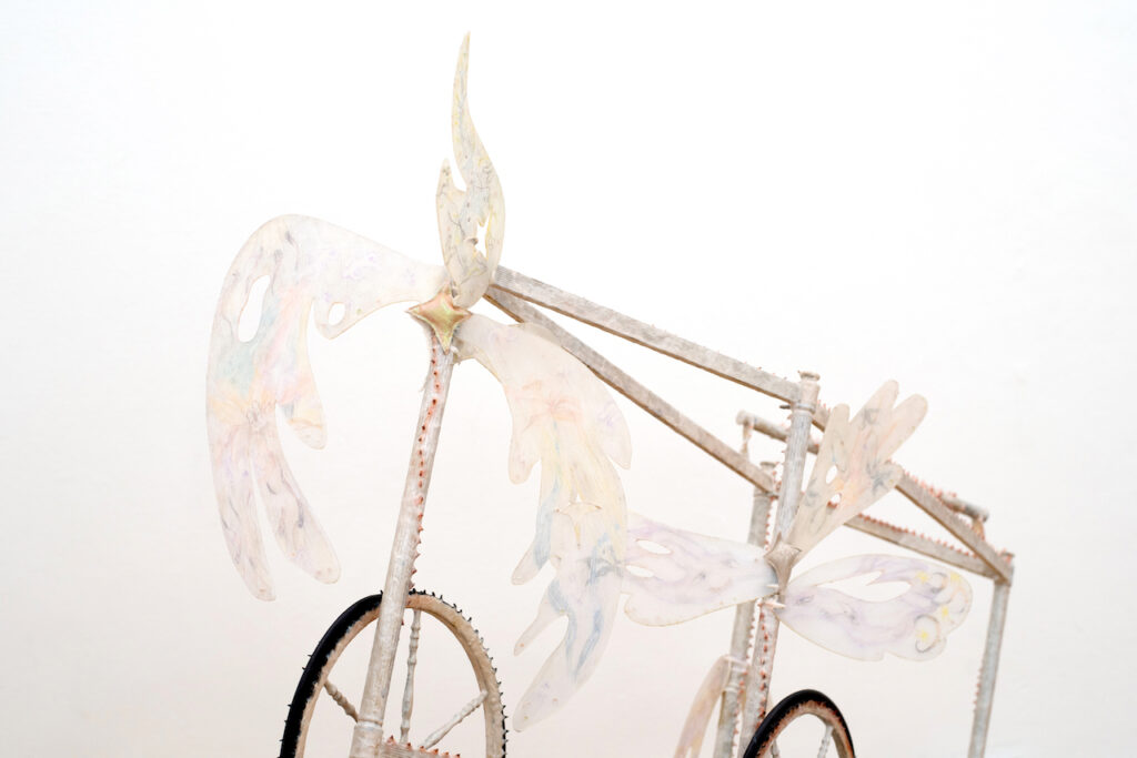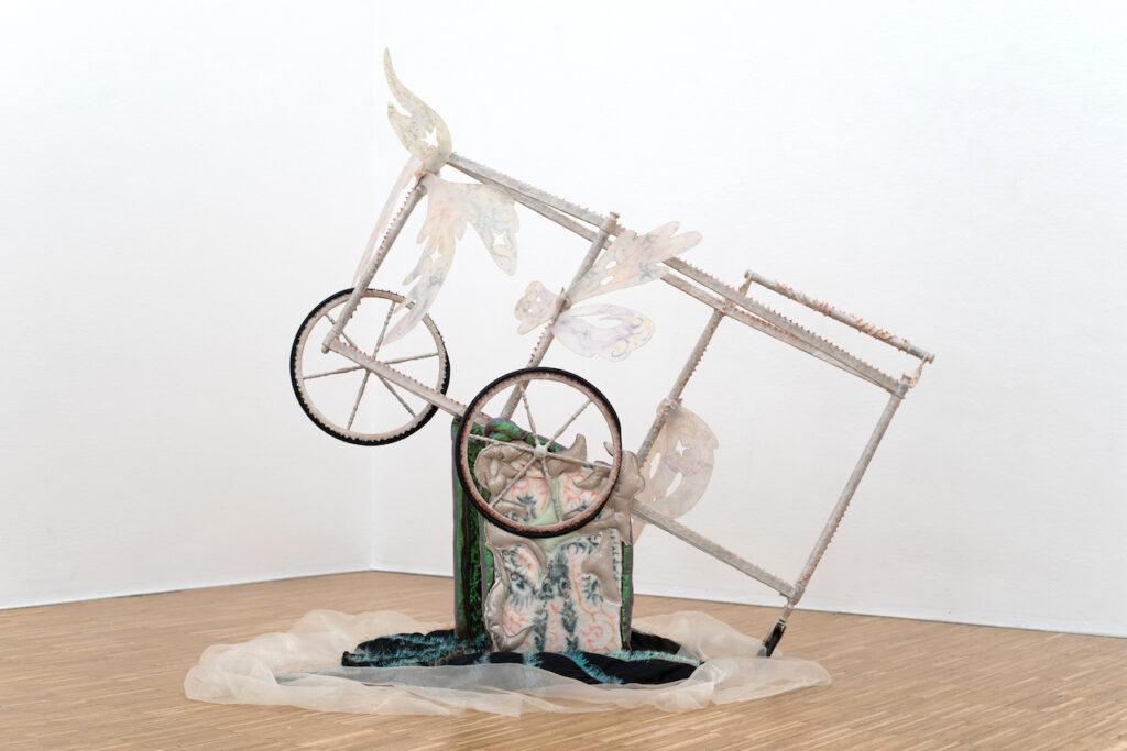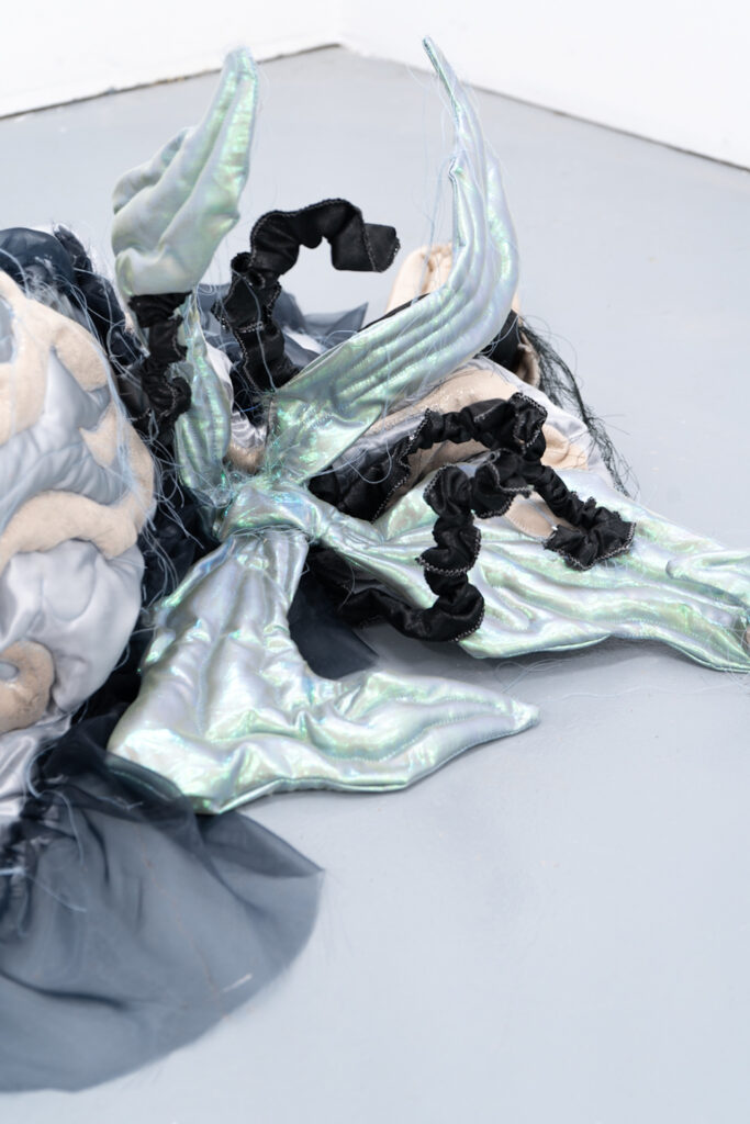 Don’t chicken out, just gently unravel me, found object, clay,wool,wig, variable size, 2025